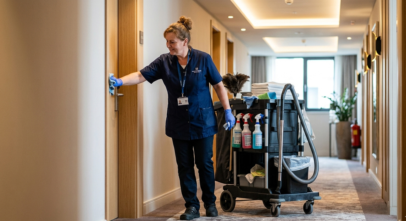 Gründliche Reinigung und Pflege der Hotelzimmer (Bettenmachen, Staubwischen, Staubsaugen, Badezimmerreinigung)