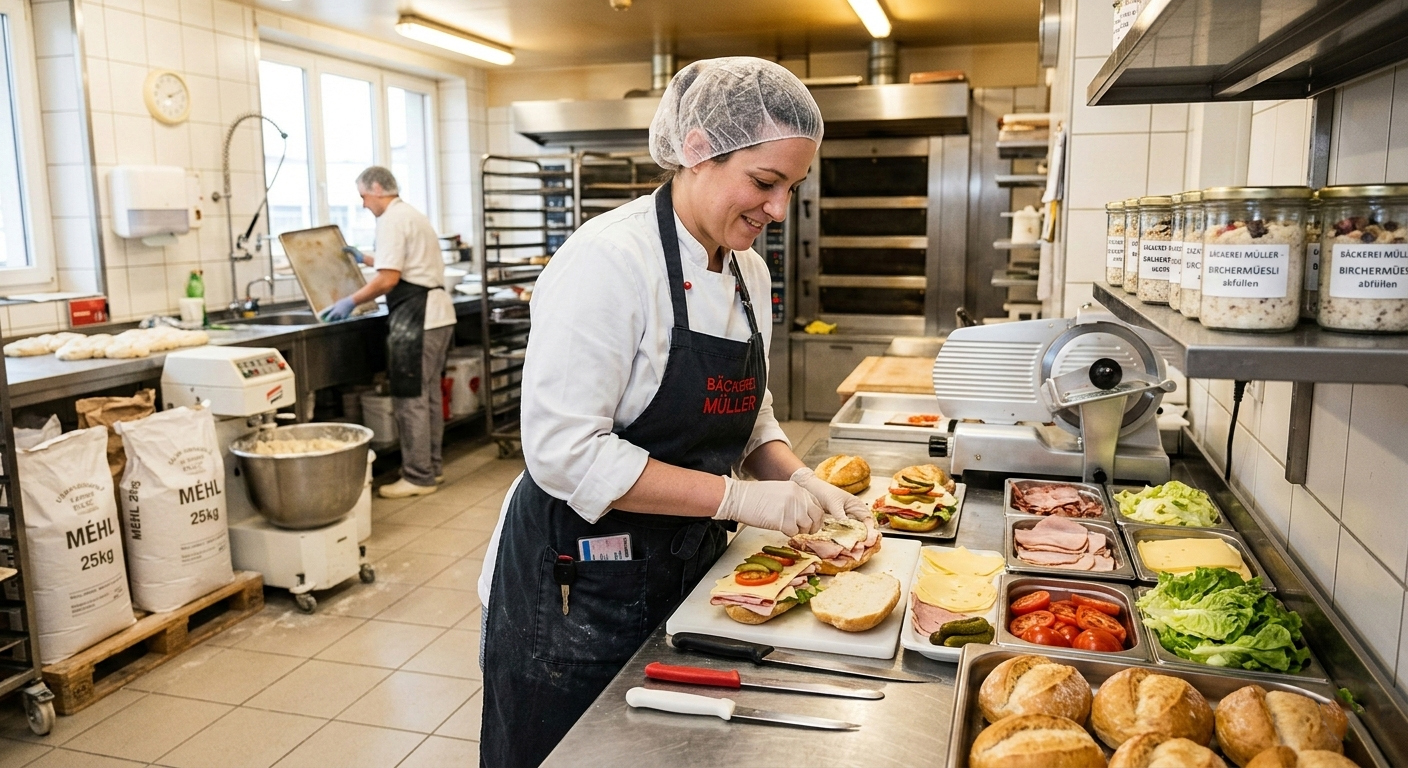 NeuWir suchen per sofort ein Hilfskraft in der Backstube. Tätigkeiten: Sandwiche machen, Belegte Brötli, Birchermüesli abfüllen, Fleisch und Käse schneiden, Massen zubereiten, Reinigungsarbeiten etc.+ evtl. ausliefern wenn Fahrausweis vorhanden.