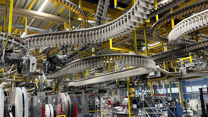 Einlegen von Zeitungsbeilagen in die Produktionsanlage