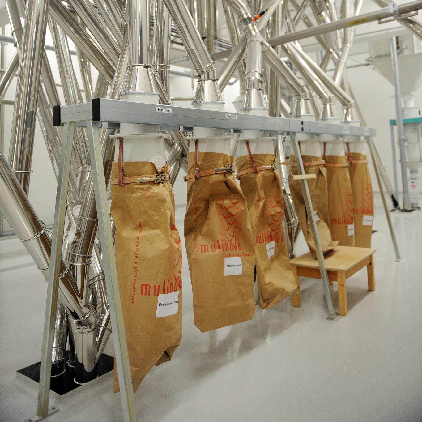 Absacken von Mehlsäcken (25 kg) inklusive Palettierung