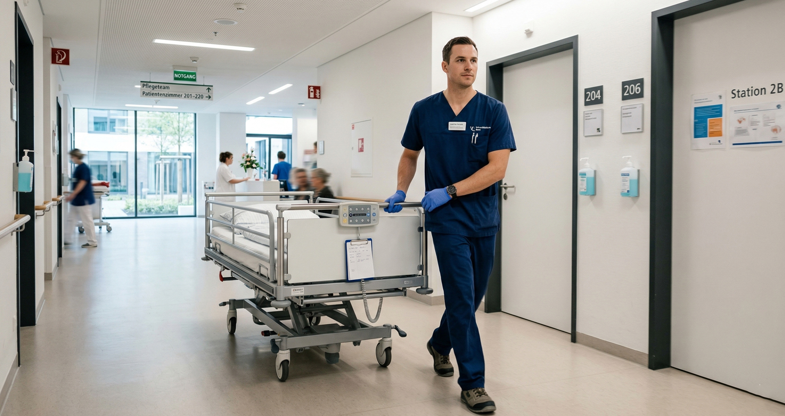 Dazu gehört die Begleitung von Patienten zu Untersuchungen oder diverse Botengänge sowie Hol- und Bringdienste im Spital