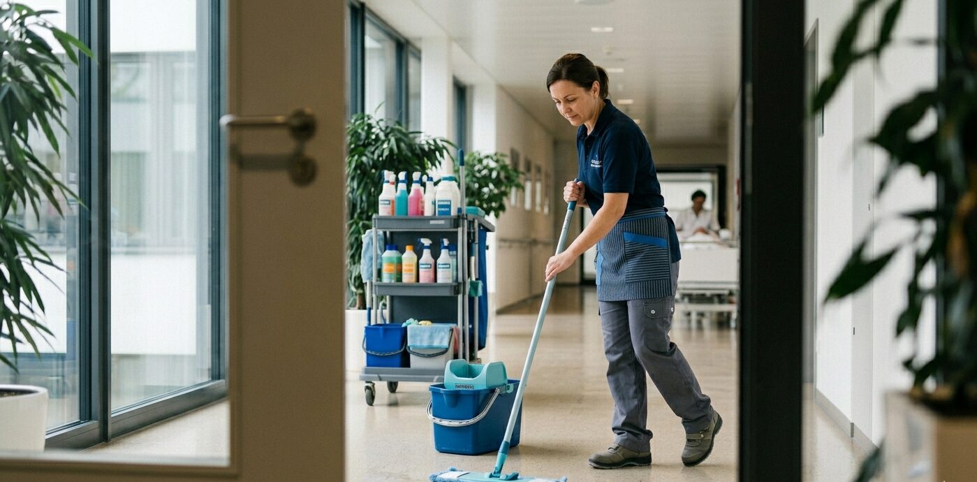 Reinigung und Pflege der zugewiesenen Räumlichkeiten gemäss dem Reinigungsplan