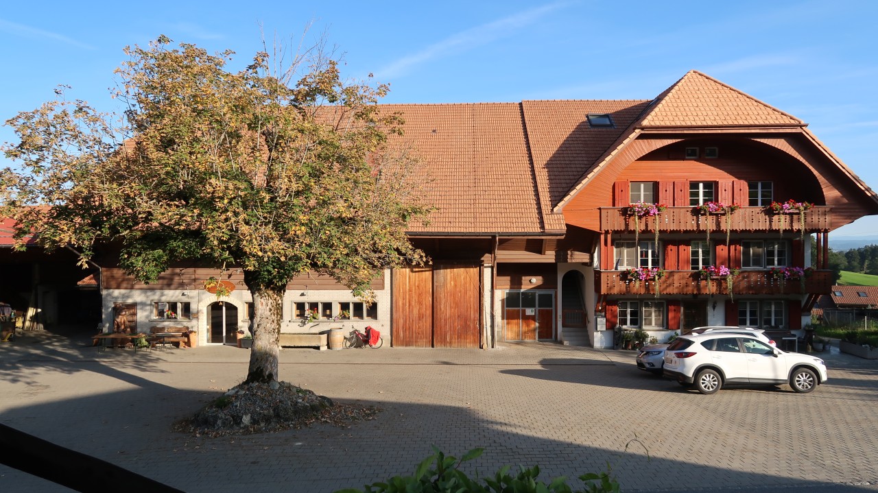 Wir führen 500 Mastschweine, 16 Mutterkühe ein paar Schafe und betreiben Ackerbau.