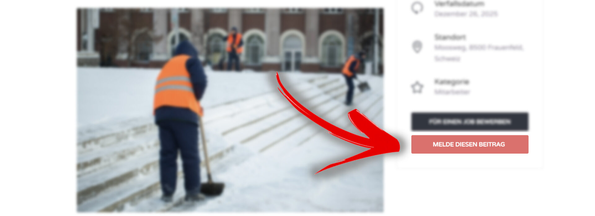 Es handelt sich um eine Funktion, die es den Nutzern ermöglicht, eine Stellenanzeige den Portal-Administratoren zu melden, falls sie diese für verdächtig, unangemessen oder gegen die Allgemeinen Geschäftsbedingungen (AGB) verstoßend halten.